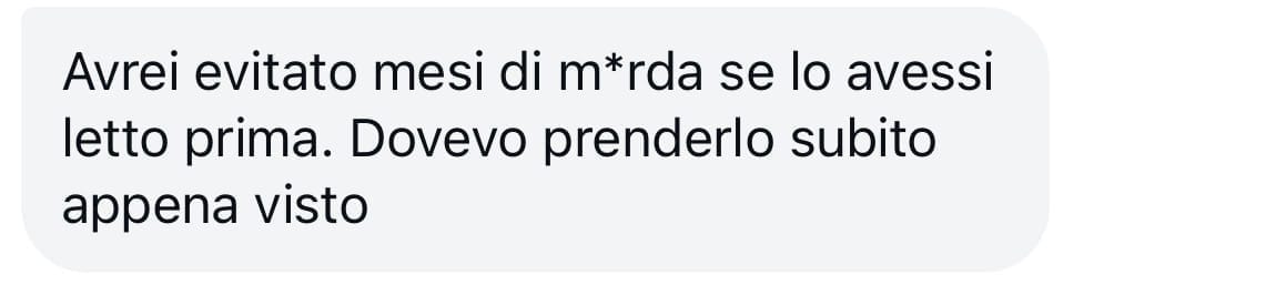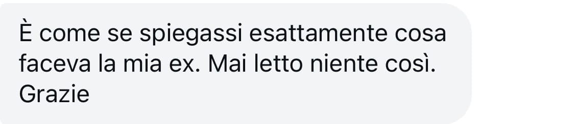 → L’ultimo ghosting quanto ti è costato?Settimane di ansia e autostima distrutta?Questo ti costa meno di una cena.E ti evita mesi di dinamiche tossiche.